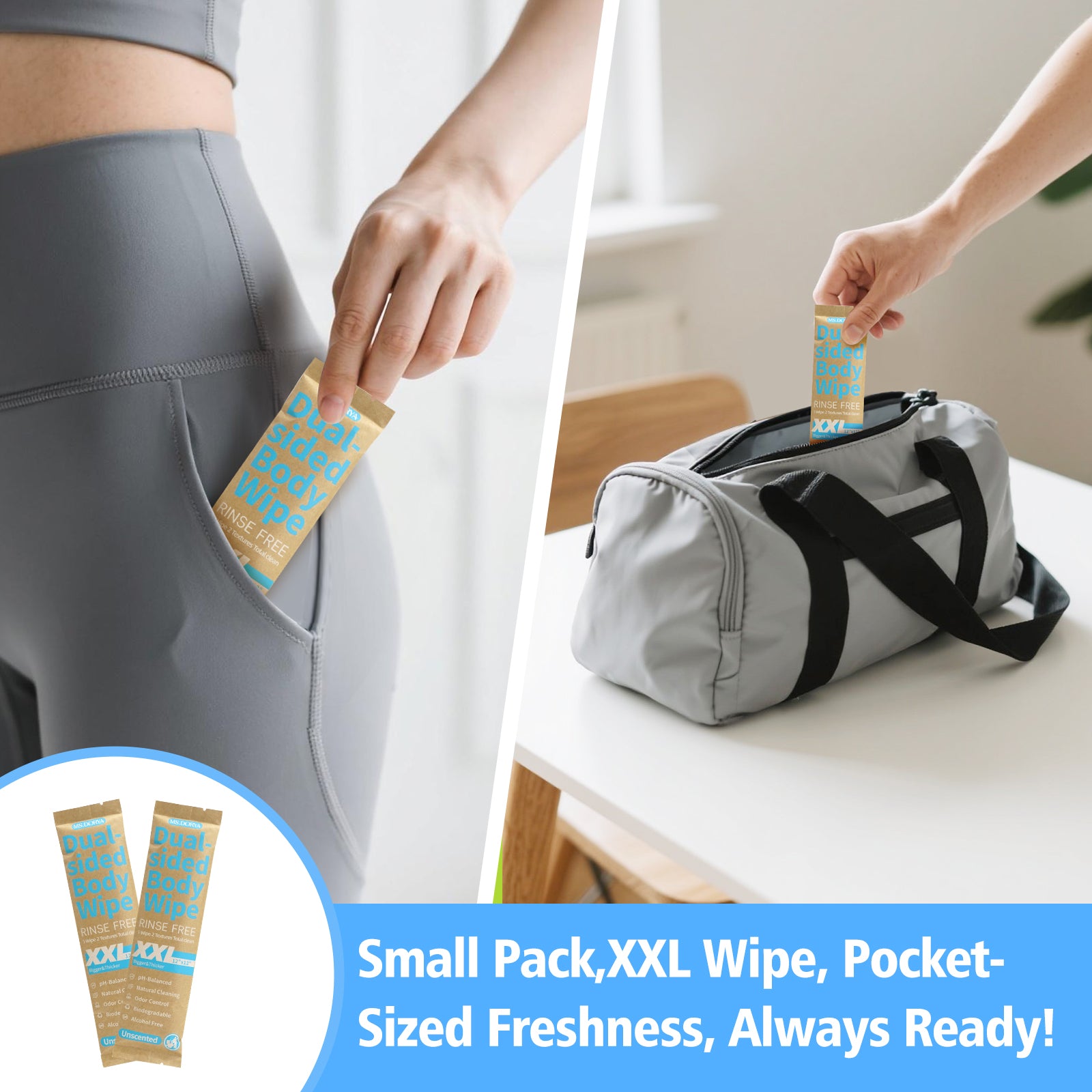 Biodegradable No-Rinse Body Wipes for Adults - 20 Individually Wrapped Cleansing Wipes with Unscented